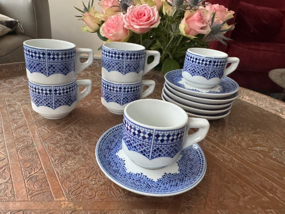 Set of 6 cups and saucers from Fez, Morocco by COCEMA