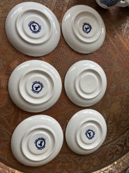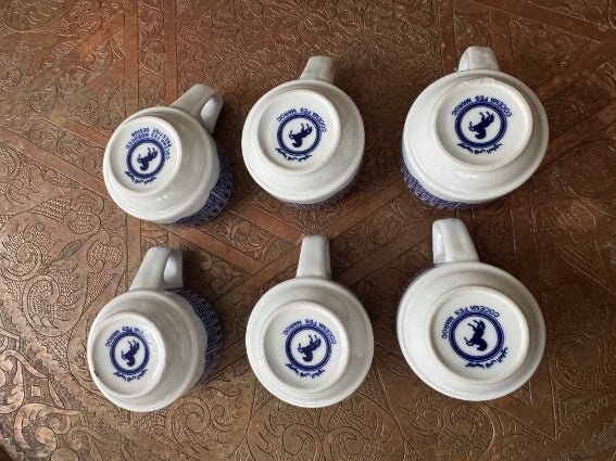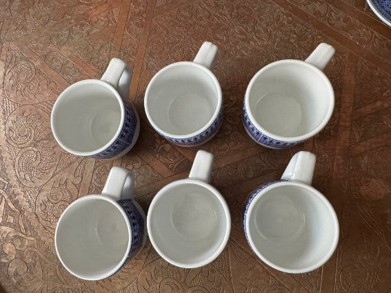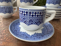 Lot de 6 tasses et sous-tasses porcelaine COCEMA de Fès, Maroc, bleu de Fès
