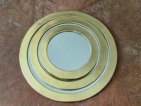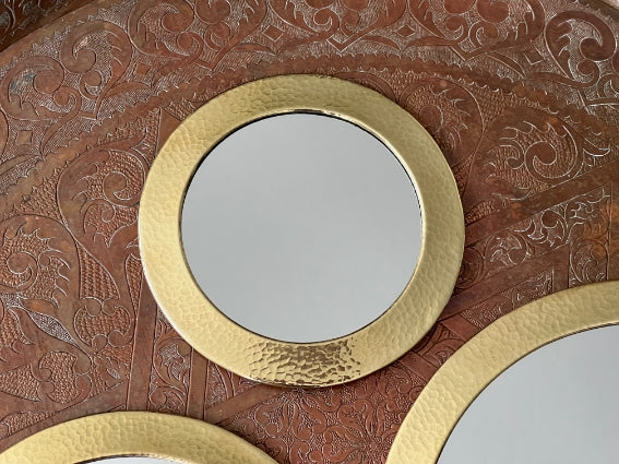 Lot de 3 miroirs ronds en laiton martelé, fabrication artisanale au Maroc